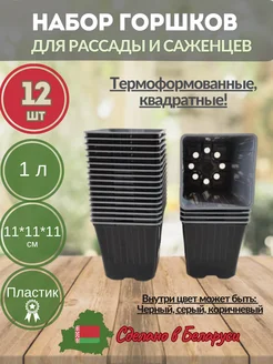 Горшки для рассады, 12 кашпо 1л горшочки квадратные