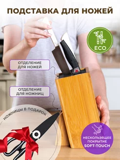 Подставка для ножей бамбуковая+ подарок ножницы кухонные