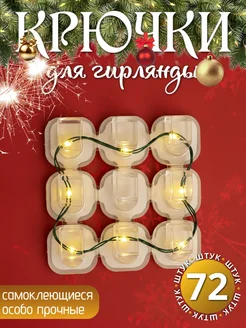 Крючки для гирлянд самоклеящиеся прозрачные, держатели 72шт