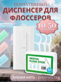 Зубочистки пластиковые и зубная нить флоссеры в диспенсере