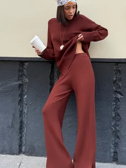 Вязаный костюм с брюками осенний оверсайз с горлом