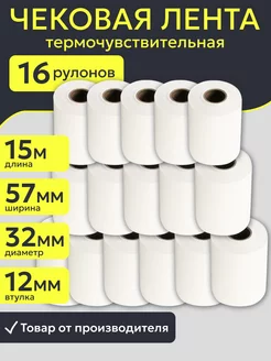 Кассовая чековая лента 57 мм, 16 рулонов по 15м