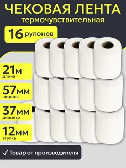 Кассовая чековая лента 57 мм, 16 рулонов по 21м
