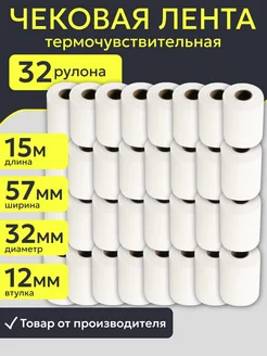 Кассовая чековая лента 57 мм, 32 рулона по 15м