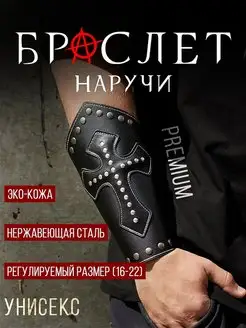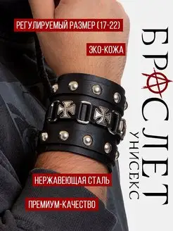 Широкий браслет напульсник кожаный с крестами и заклепками