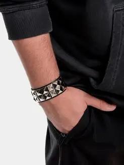 Браслет напульсник с заклепками кожаный