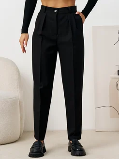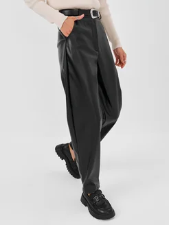 Брюки кожаные бананы в офис зауженные прямые укороченные