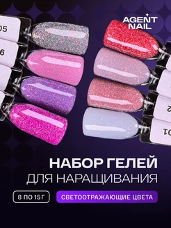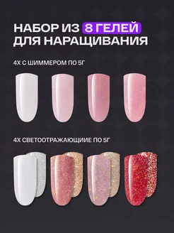 Набор светоотражающих гелей для наращивания Flash 8 шт по 5г