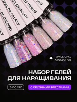 Набор гелей для наращивания опал с блестками 6 шт по 15 г