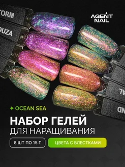 Набор гелей для наращивания русалка с блестками 8 шт по 15 г