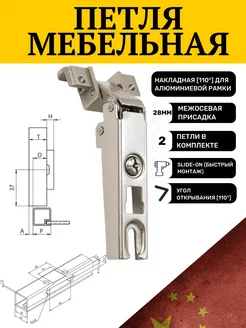 Петля мебельная накладная с доводчиком 155° фурнитура