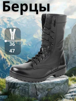 Берцы осенние кожаные с молнией и шнуровкой армейские