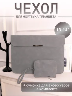 Чехол для ноутбука с сумочкой 13" 14" светло- серый