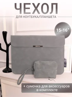 Чехол для ноутбука с сумочкой 15" 15.6" 16" светло- серый