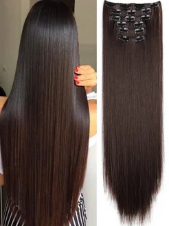 Накладные пряди прямые на заколках Шоколад