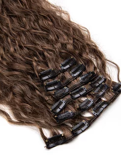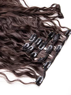 Накладные пряди волнистые волосы на заколках Каштановый