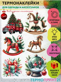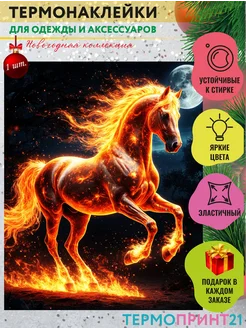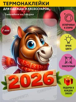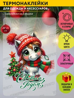 Термонаклейка на одежду лошадь, термотрансфер новогодний
