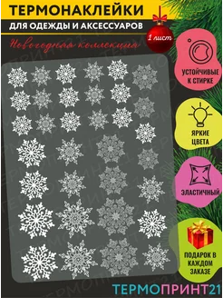 Термонаклейка на одежду снежинки, термотрансфер новогодний