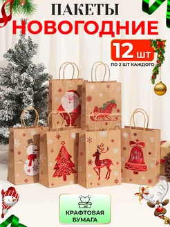 Подарочный пакет новогодний с ручками крафт 12 штук
