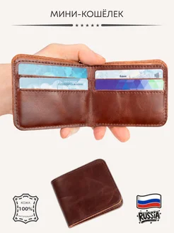 Кошелёк бифолд из натуральной кожи компактный 10×8 см