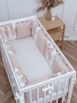 Бортики в кроватку для новорожденных бежево-розовые