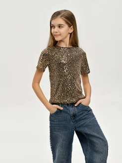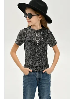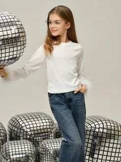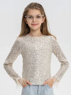 Блузка праздничная с пайетками и рукавами с перьями детская