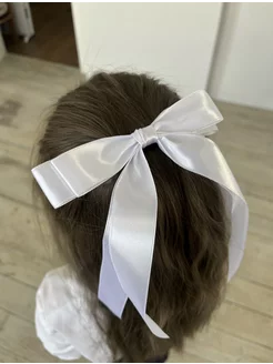 Белый атласный бант на заколке