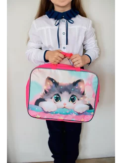 Папка с пеналом школьная текстильная Котик Корея набор