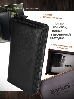 Портмоне в деревянной подарочной упаковке 2 молнии