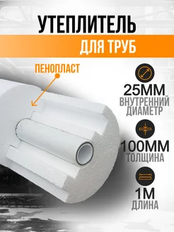 Утеплитель для труб (Скорлупа) диаметром 25мм, толщина 100мм