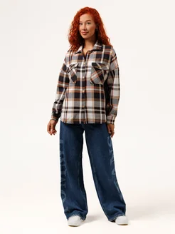 Рубашка в клетку оверсайз теплая удлиненная