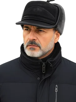 Кепка с ушками теплая экокожа