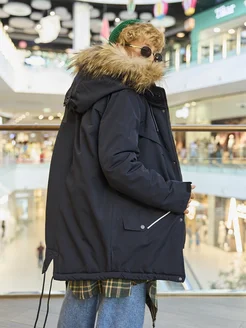 Куртка зимняя для подростка с капюшоном удлиненная