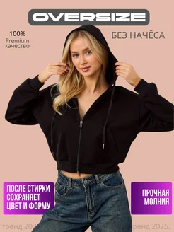 Укороченная худи на молнии оверсайз