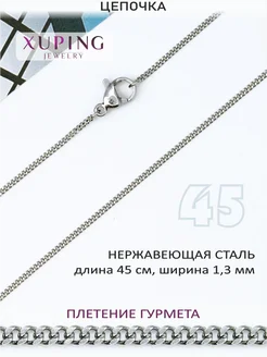 Цепочка тонкая 45 см, ширина 1,3 мм, плетение ГУРМЕТА