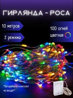 Гирлянда-нить Роса 10 м на батарейках — разноцветный свет