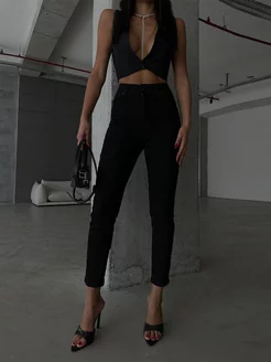 Джинсы черные женские скинни с высокой посадкой стрейч