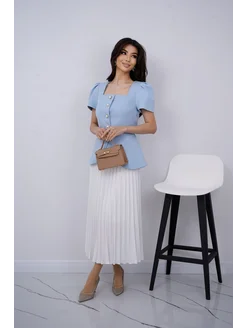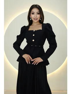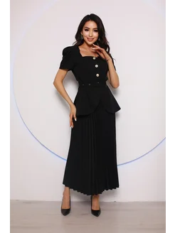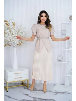 Костюм твид с юбкой плиссе миди