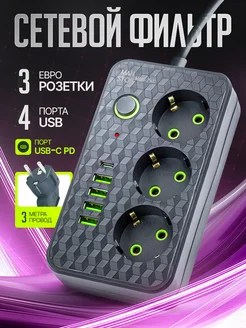 Сетевой удлинитель 3м (3x 220 4 USB 3.0 1x typeC PD)