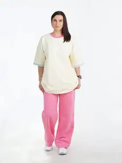 Брюки прямые трикотажные розовые