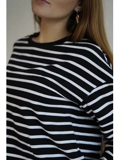Кофта в полоску тельняшка свитшот короткий чёрно-белый