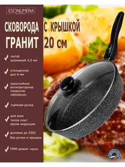 Сковорода 20 см антипригарная, крышка, съемная ручка