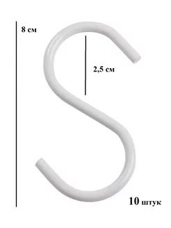 Крючок S-образный для трубы рейлинга 25 мм белый 10 штук