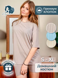 Домашний костюм однотонный оверсайз в полоску хлопковый