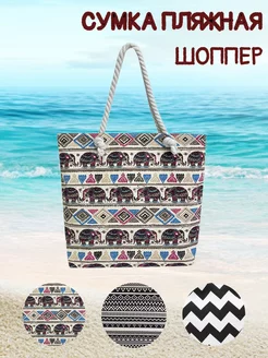 Пляжная сумка большая на молнии шоппер ткань