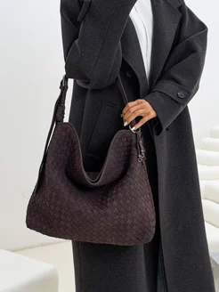 сумка женская большая хобо плетеная замшевая