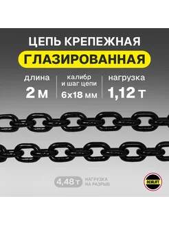 Цепь строительная грузовая 6х18 мм 2 метра глазированная