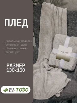 Плед крупной вязки 130*150, подарочный, на кровать, серый