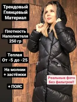 Куртка пуховик зимняя женская с капюшоном длинная теплая