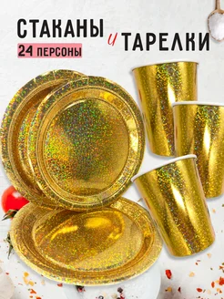Одноразовая посуда стаканы и тарелки 48 шт